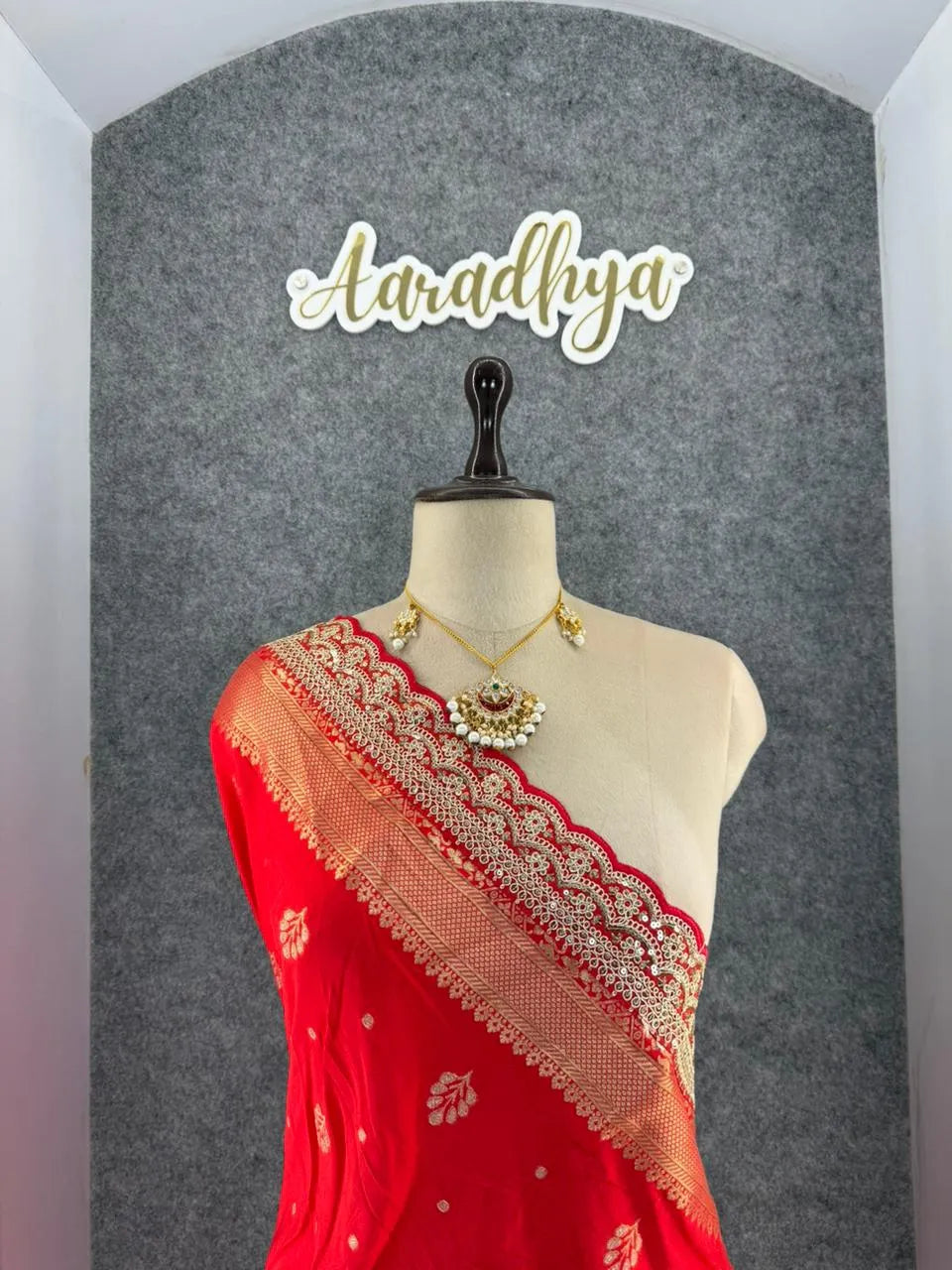 Shop for a variety of Indian sarees online at Aaradhya Sarees India, a store that delivers classic, trending, and designer sarees in silk, georgette, net, and more fabrics and colors.