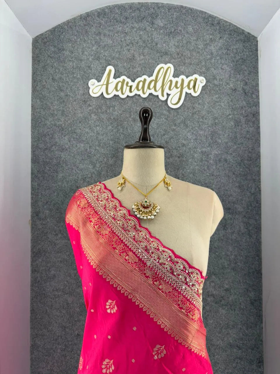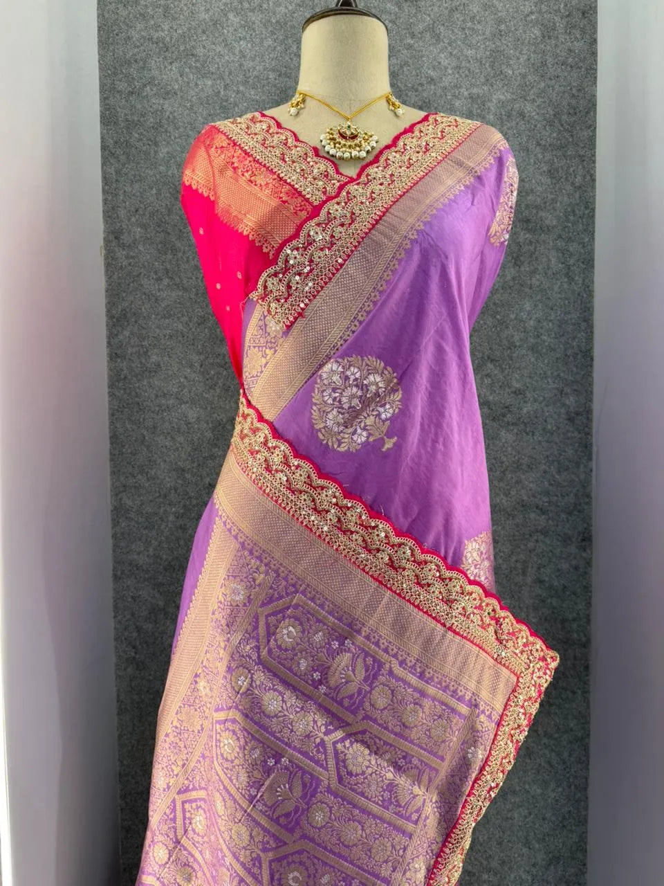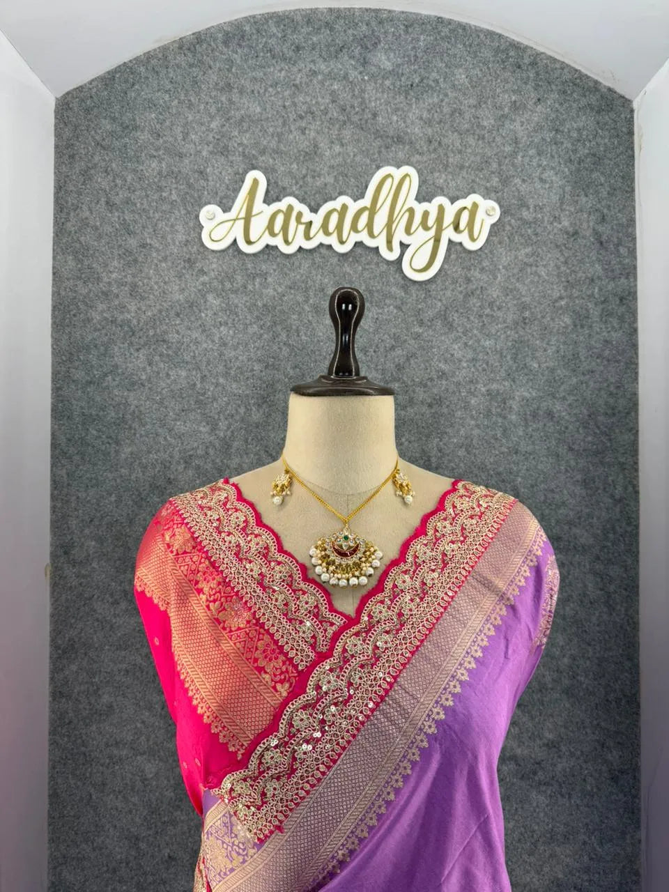 Banarasi Jaal Embroidery Sequence Work Sarees (Unstiched Blouse)