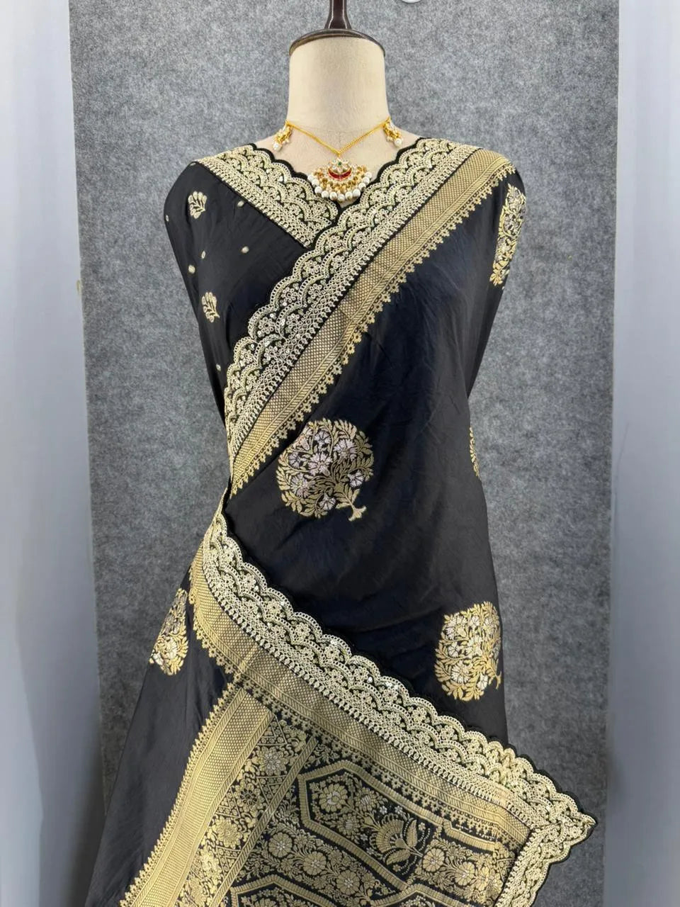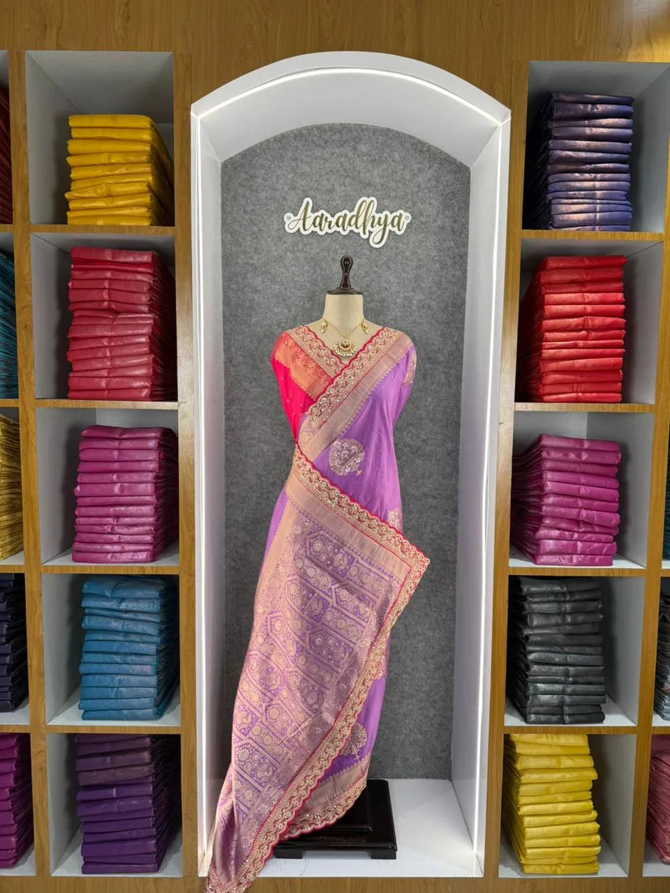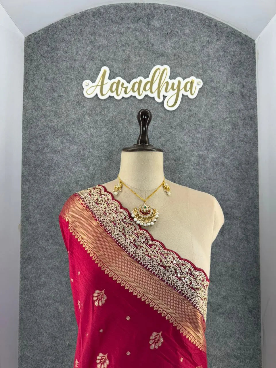 Banarasi Jaal Embroidery Sequence Work Sarees (Unstiched Blouse)