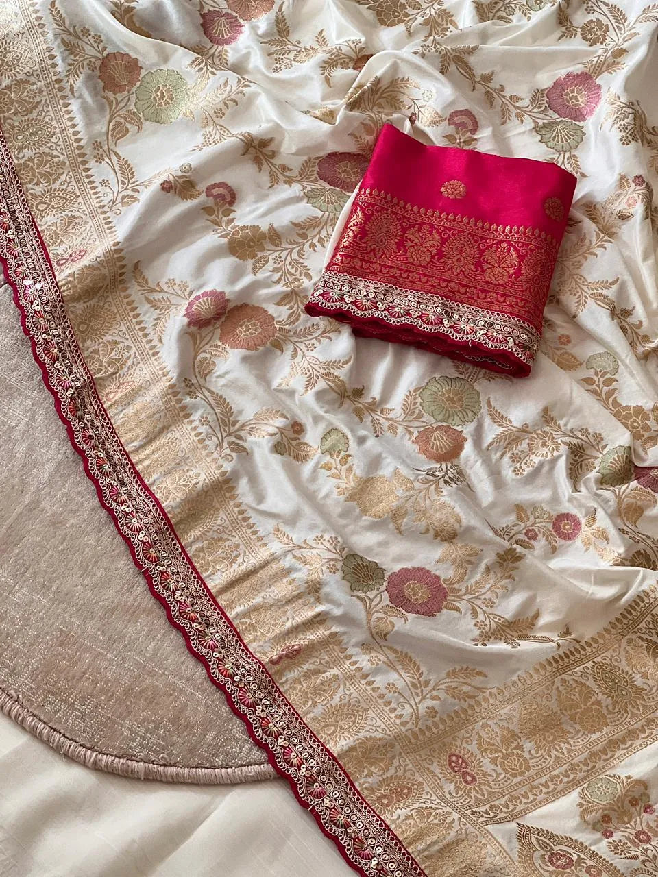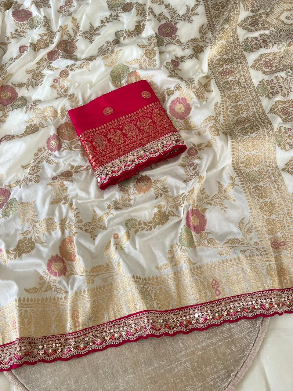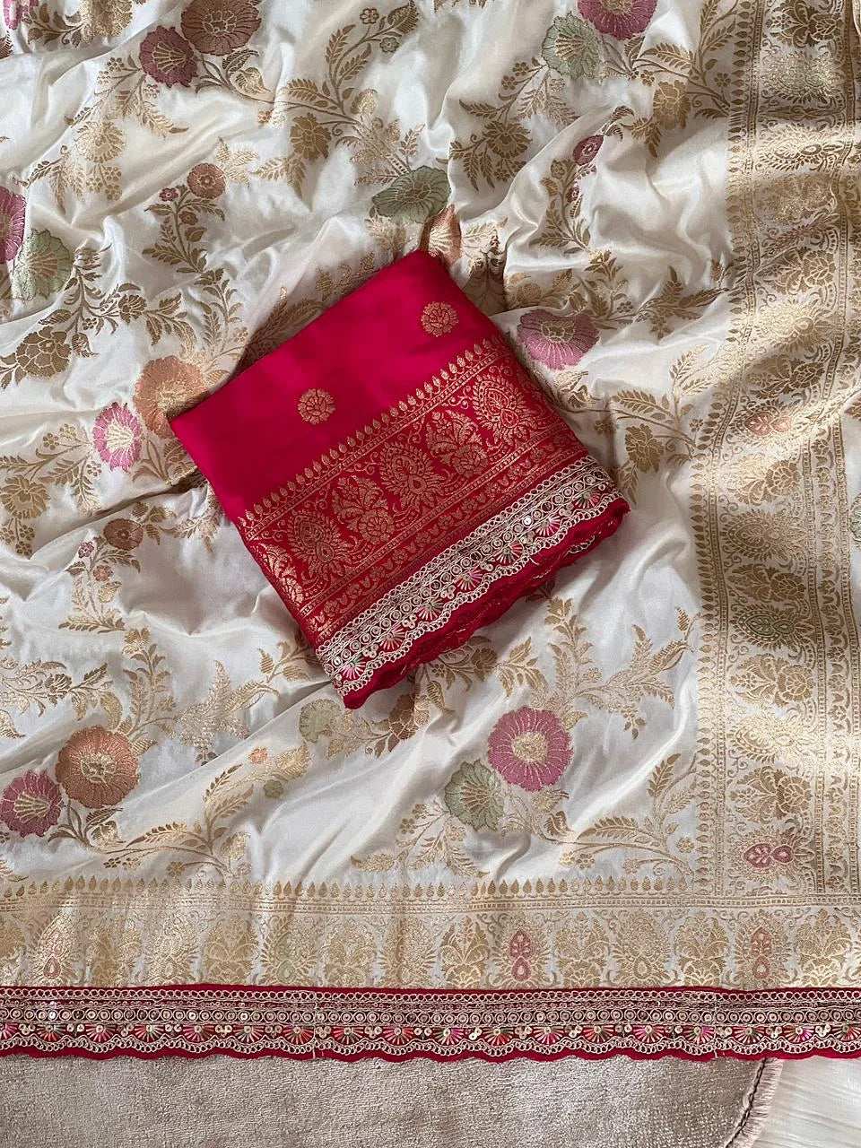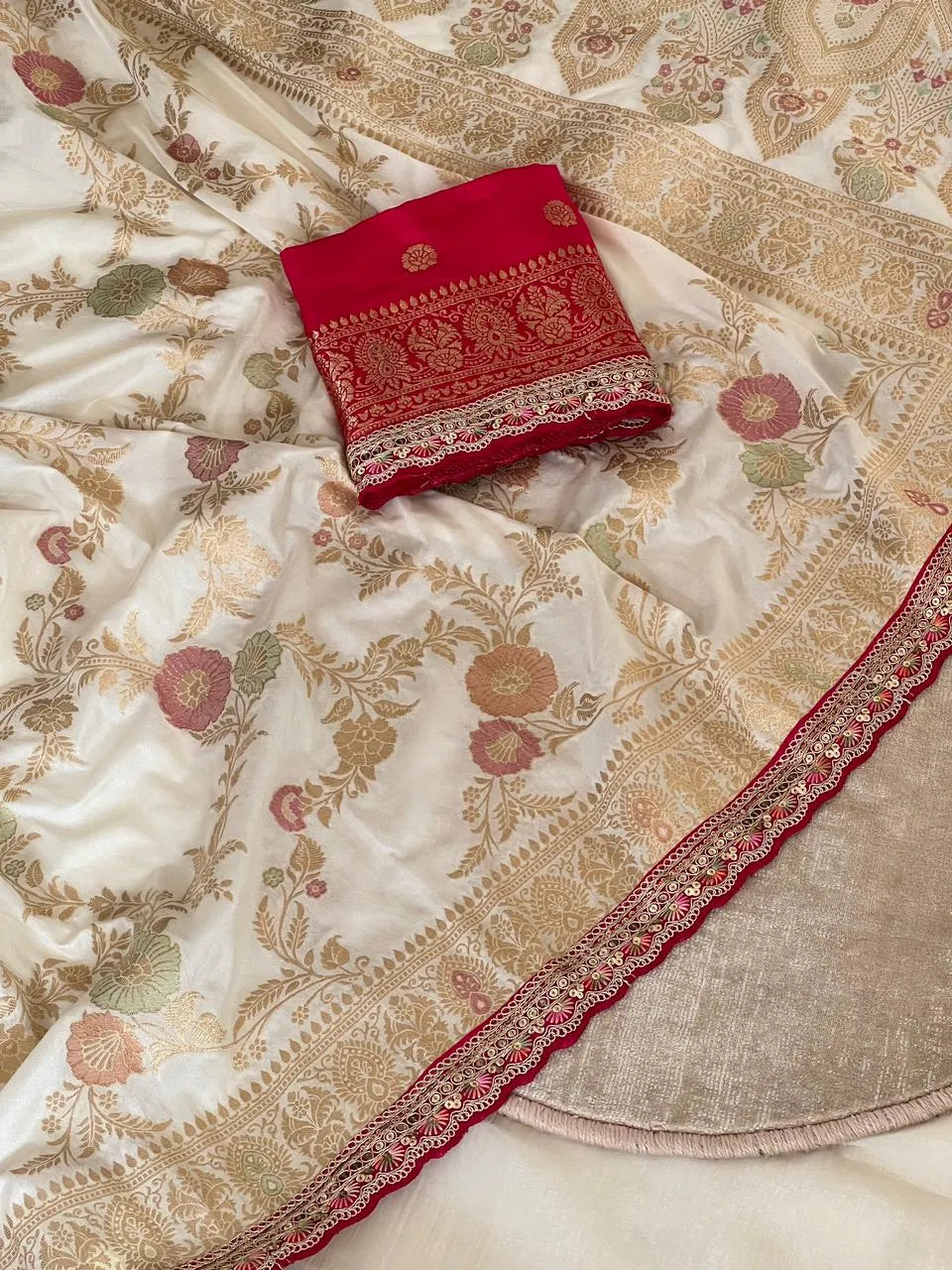 Banarasi Silk Saree Rich Red Zari Border Saree