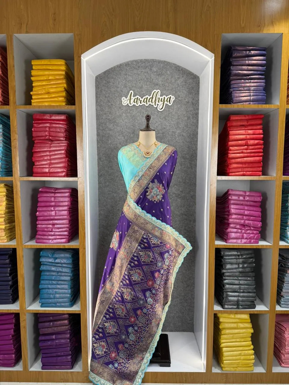 Shop for a variety of Indian sarees online at Aaradhya Sarees India, a store that delivers classic, trending, and designer sarees in silk, georgette, net, and more fabrics and colors.