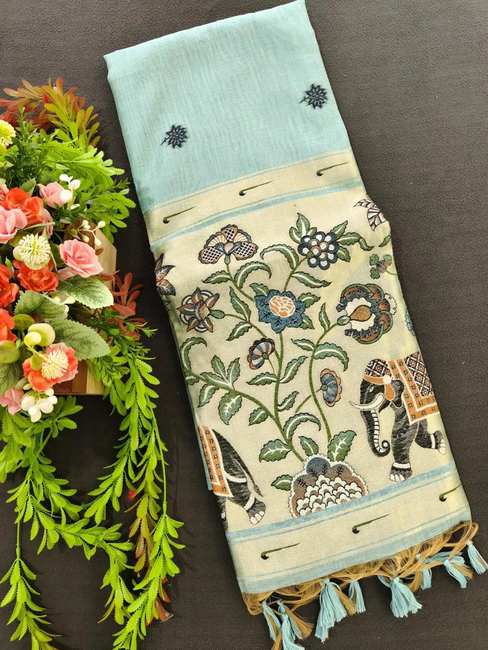 Premium Soft Moga Cotton Paithani Saree, thoughtfully crafted to offer both comfort and timeless beauty. The soft moga cotton fabric ensures a lightweight, breathable drape, making it perfect for long festive hours and elegant day occasions.