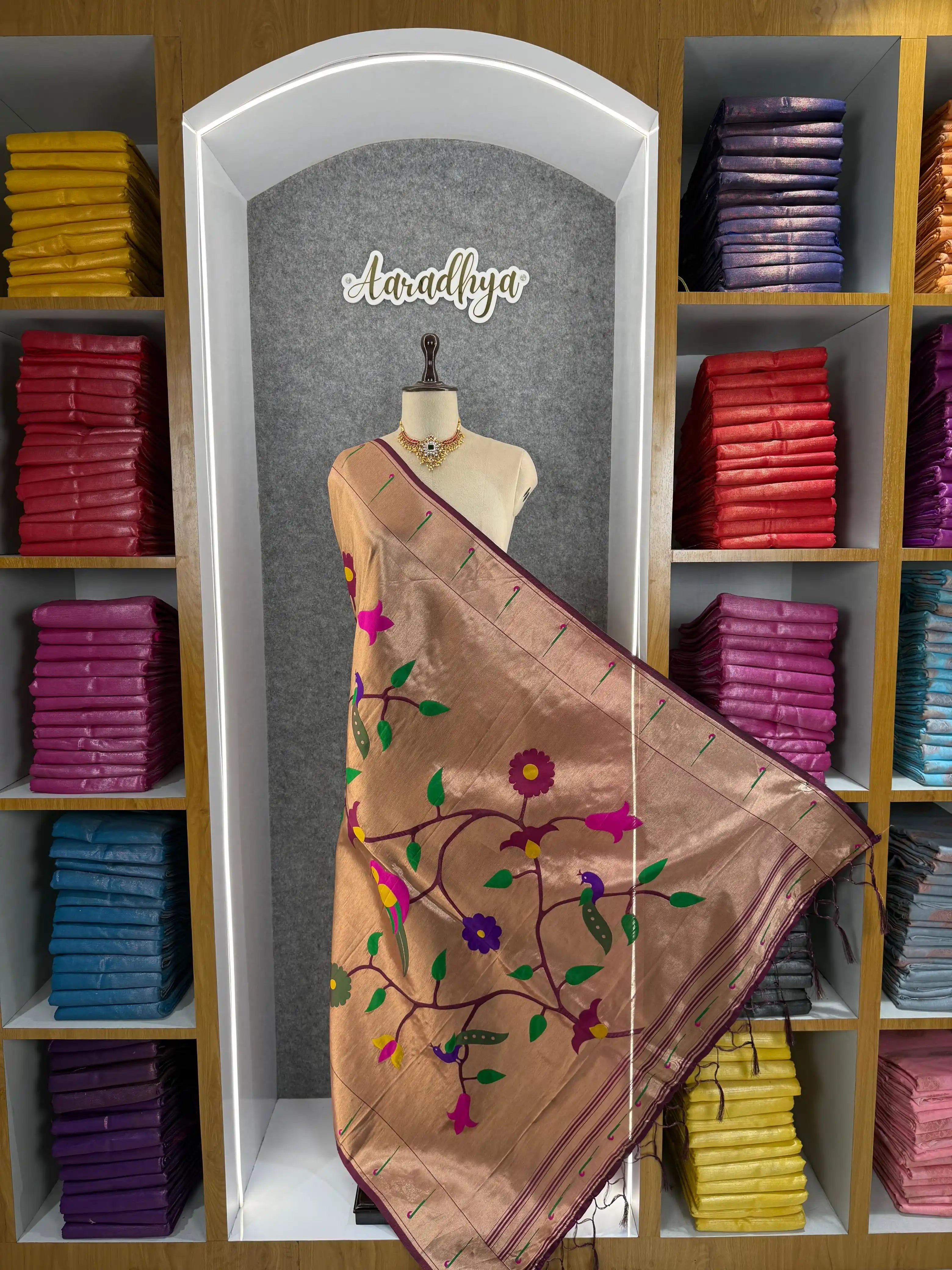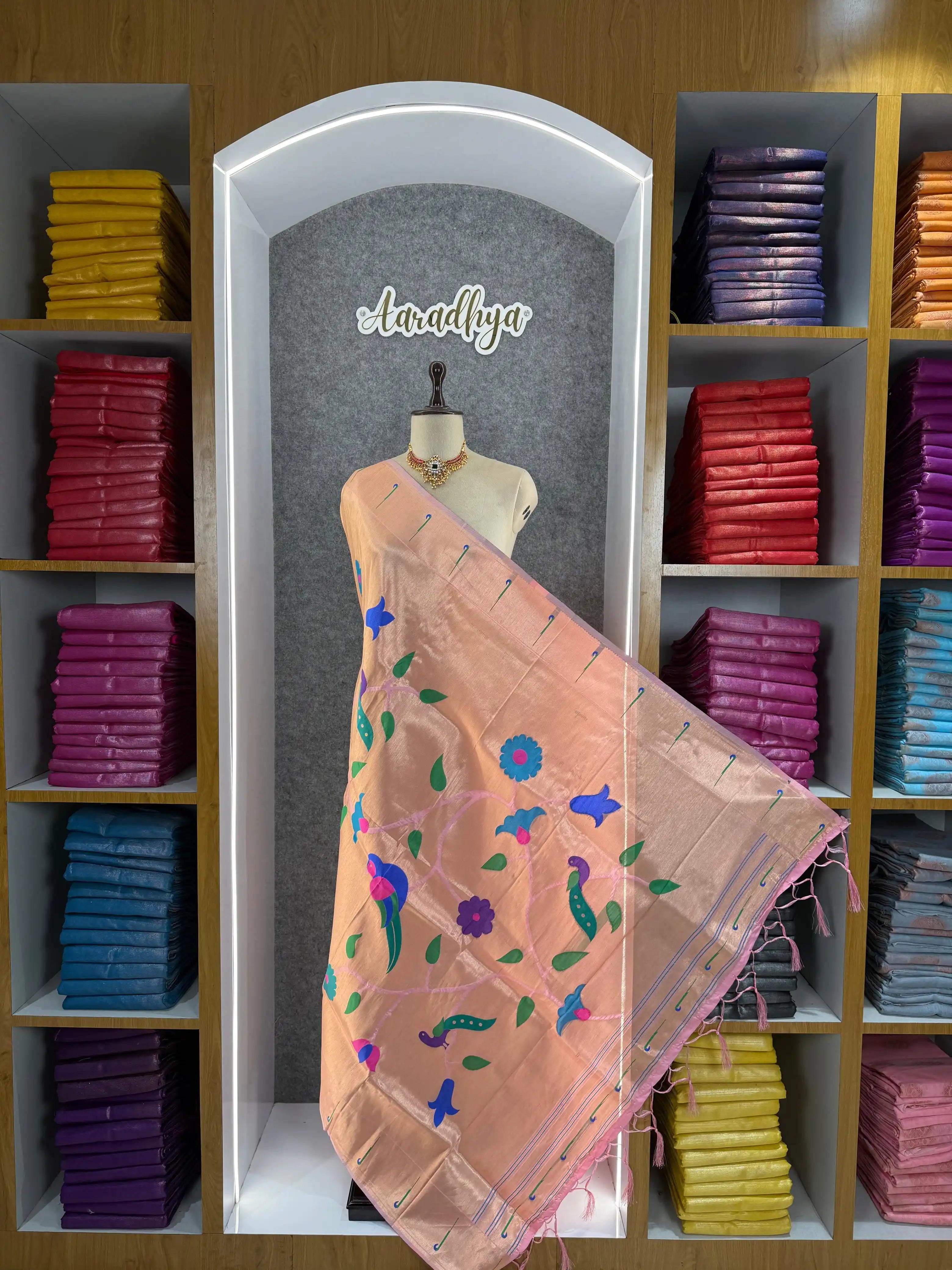 Experience timeless elegance with this saree crafted in original pure zari weaving. It features a beautifully detailed minakari border and a rich heavy mina zari woven pallu that adds a regal touch to the overall look. The intricate craftsmanship reflects traditional artistry while offering a luxurious finish. Perfect for weddings, festive occasions, poojas, and special celebrations, this saree delivers premium quality, authentic weaving, and long-lasting shine—making it an ideal choice for those who value originality and heritage in silk sarees.