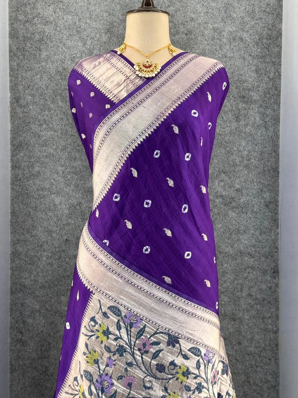 Viscose Raw Silk Bandhej Printed Paithani Saree