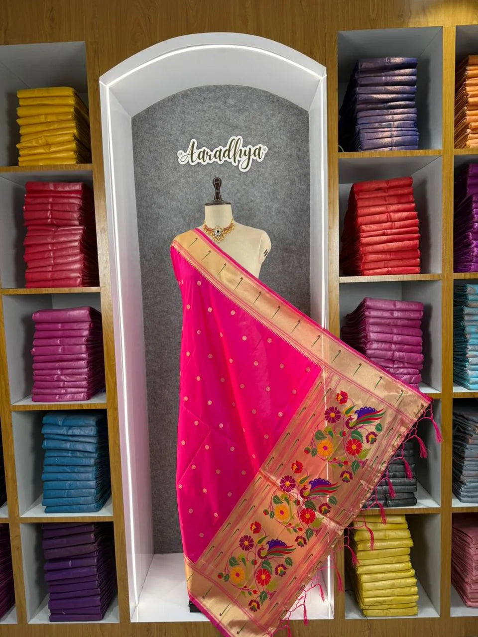 Experience timeless elegance with this saree crafted in original pure zari weaving. It features a beautifully detailed minakari border and a rich heavy mina zari woven pallu that adds a regal touch to the overall look. The intricate craftsmanship reflects traditional artistry while offering a luxurious finish. Perfect for weddings, festive occasions, poojas, and special celebrations, this saree delivers premium quality, authentic weaving, and long-lasting shine—making it an ideal choice for those who value originality and heritage in silk sarees.