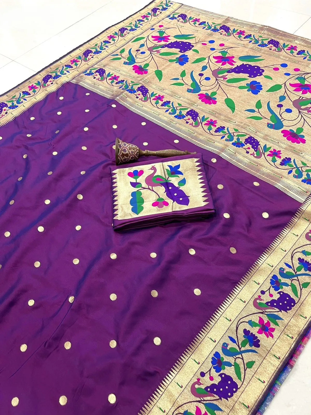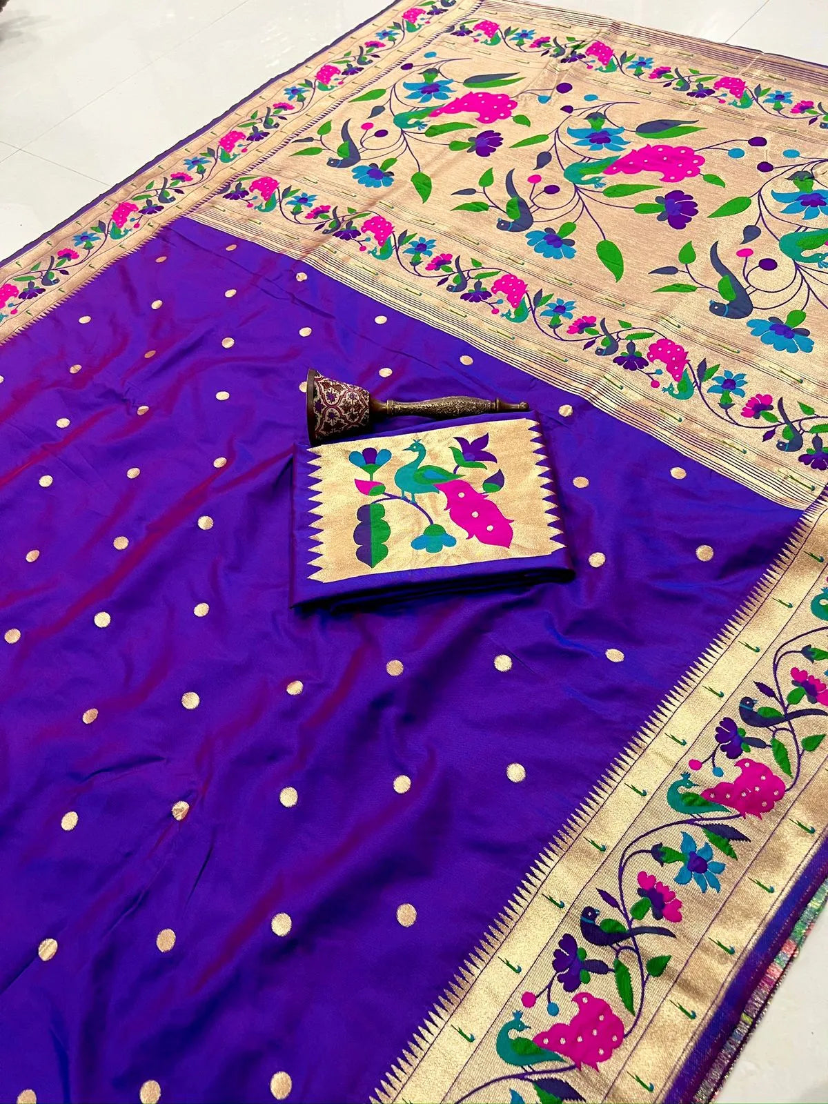 Accentuated with a classic Paithani-inspired border and a richly designed pallu, this saree adds a regal charm without being heavy. Its subtle sheen and refined detailing make it an ideal choice for weddings, festive occasions, poojas, and special celebrations.