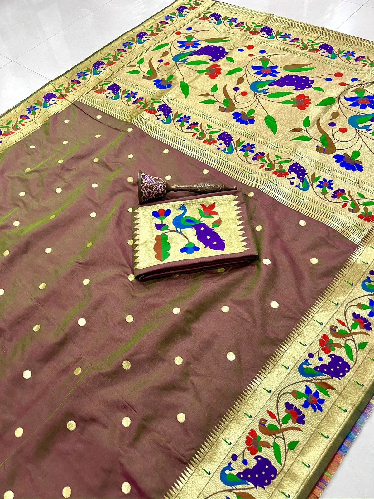 Pure Soft Kanchivaram Paithani Silk Saree, crafted to reflect rich Indian heritage with a modern, elegant touch. The saree features a beautifully woven body with a soft, smooth texture that drapes effortlessly and feels comfortable for long wear.