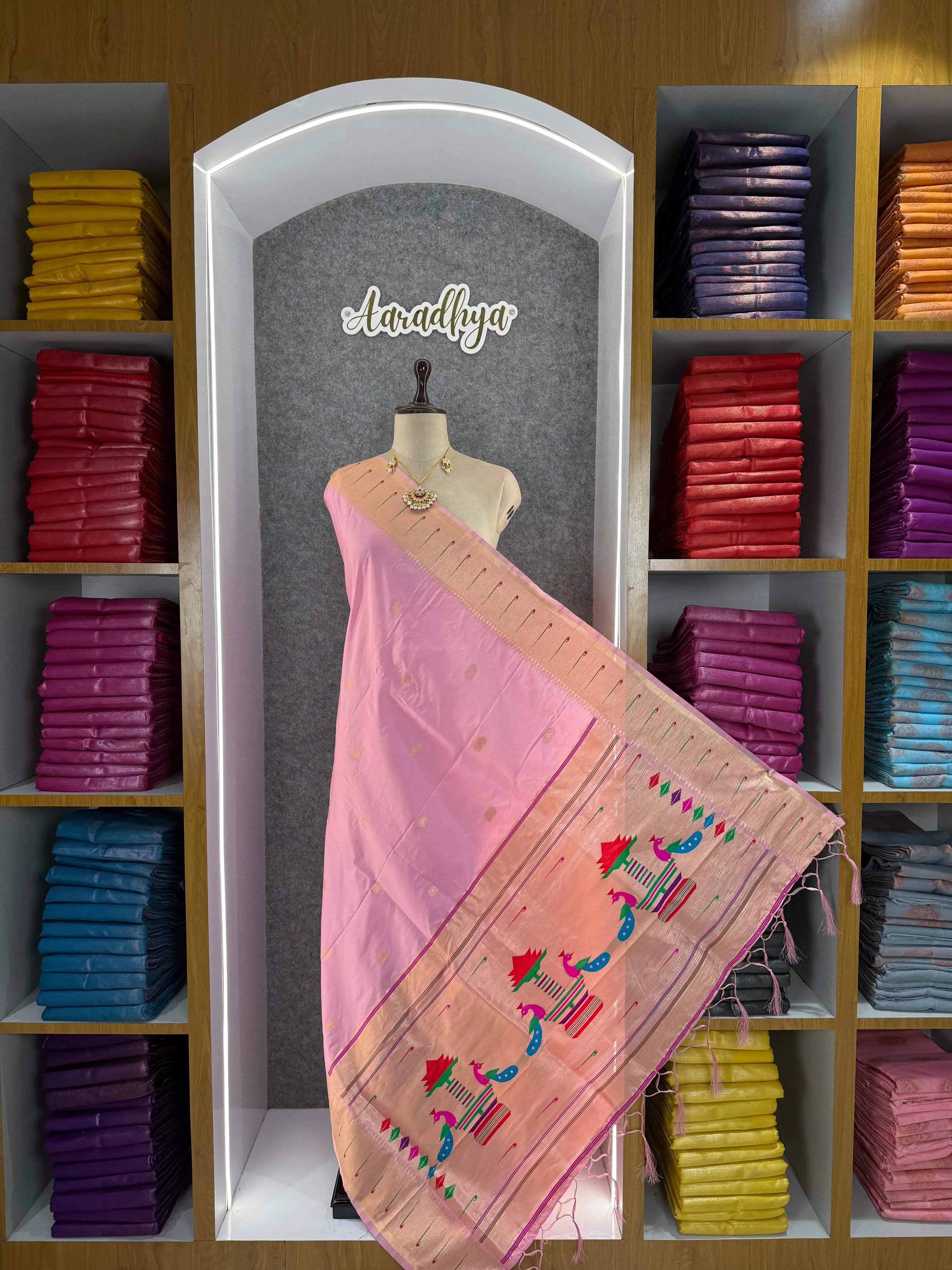 Experience timeless elegance with this saree crafted in original pure zari weaving. It features a beautifully detailed minakari border and a rich heavy mina zari woven pallu that adds a regal touch to the overall look. The intricate craftsmanship reflects traditional artistry while offering a luxurious finish. Perfect for weddings, festive occasions, poojas, and special celebrations, this saree delivers premium quality, authentic weaving, and long-lasting shine—making it an ideal choice for those who value originality and heritage in silk sarees.
